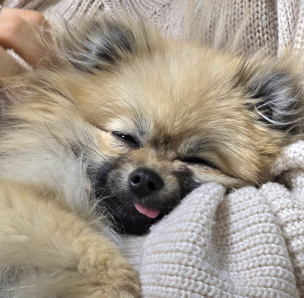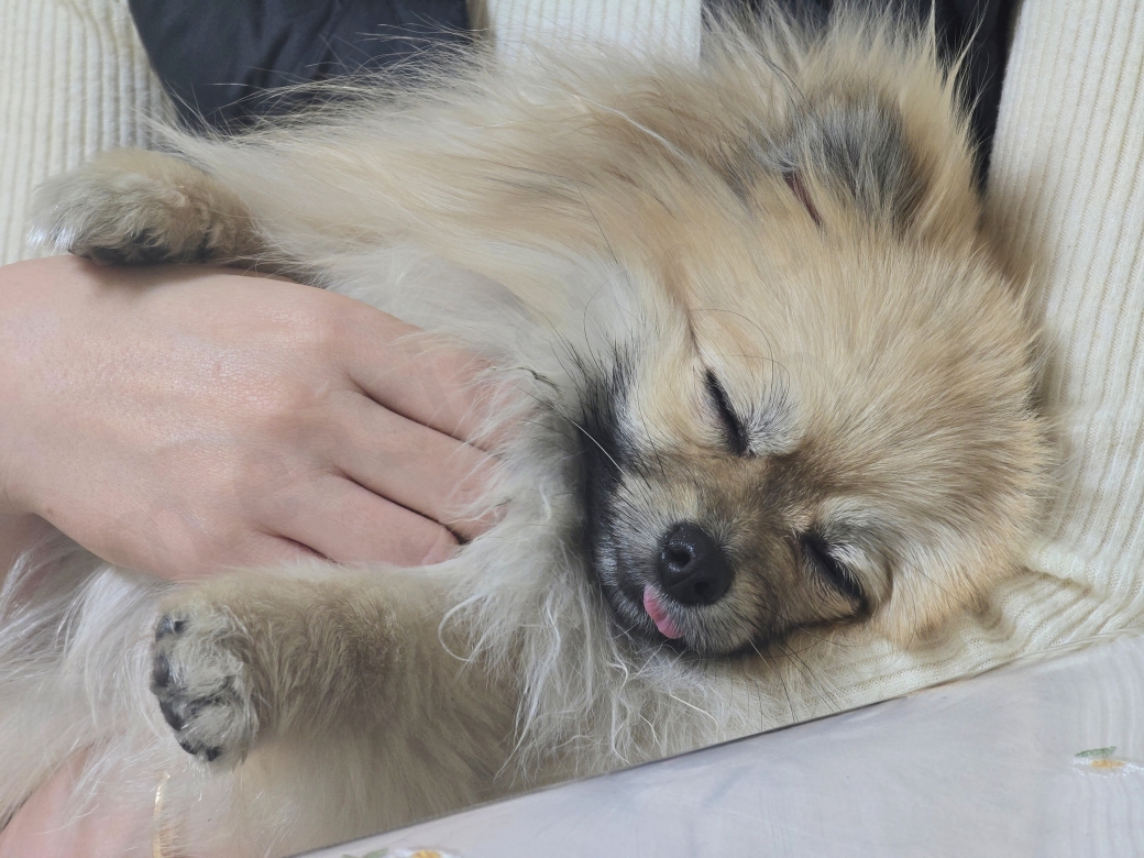 강아지가 편안할 때면 혓바닥을 내어 놓기도 합니다. 주로 품에 안겨 있을 때 이런 모습을 자주 보여요.